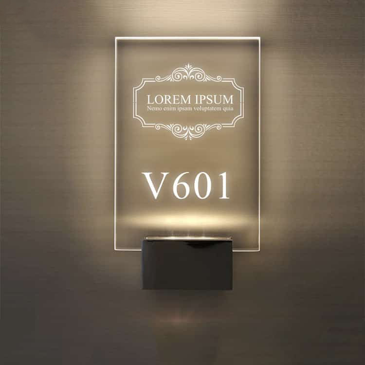 LED Acrylic Sign Edge Lit Wall Hotel Room Number Plaque