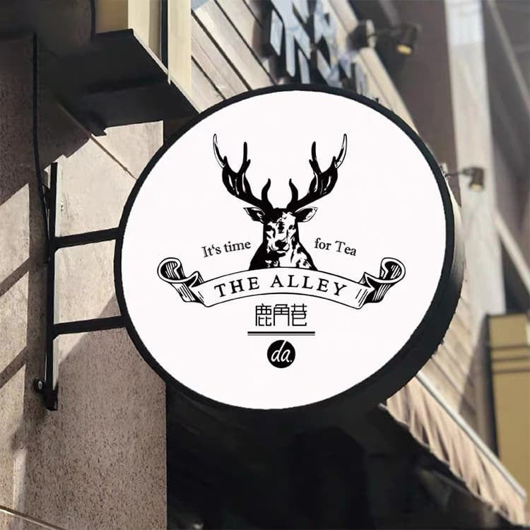 - Metal light box, outdoor glow round shape led blade sign with custom made logo;