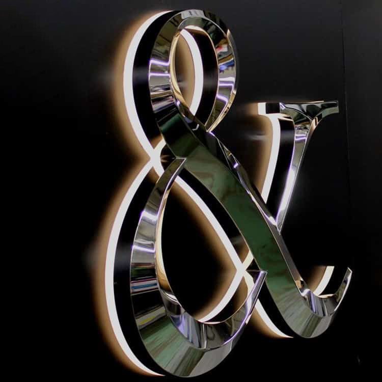 Illuminated exterior Reverse channel letter sign and logos are the best in the industry. We create some truly amazing lighting led signage projects out of stainless steel, aluminum, bronze or copper for a great price and quick production timelines.