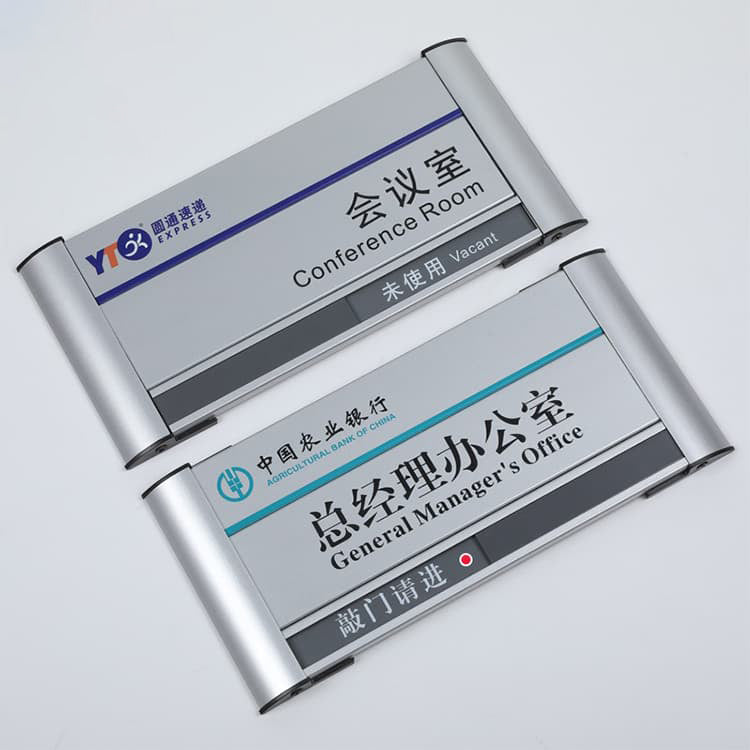 Non-illuminated modular siganegs are custom make. Normally it have follow types: First, acrylic print and fret cut; second, metal with print or laser cut message; Finally, aluminum modular sign, this type door sign is high quality. At the end, each door sign can custom made and can add slider on the sign.
