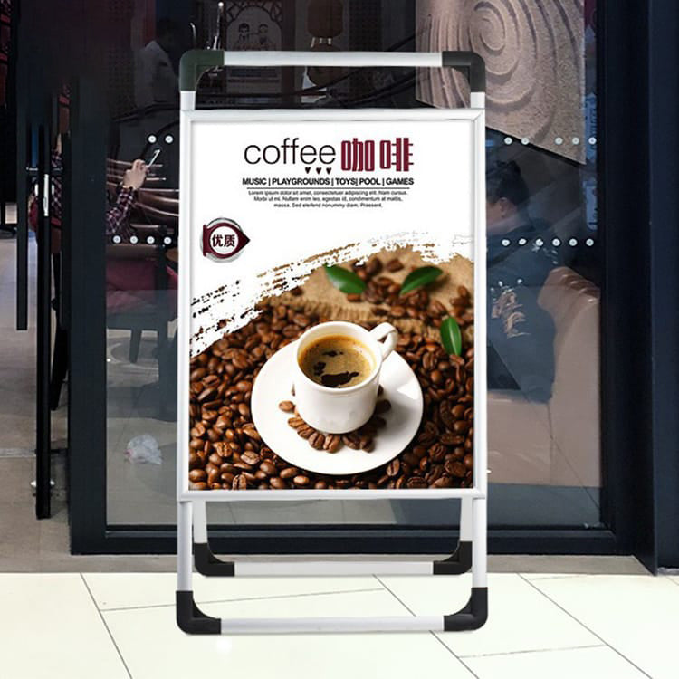 FastMetalSign supply high quality aluminum profile sidewalk sign and poster frame: A frame signage, custom single sided and double sided pavement sign for poster display; Outdoor sidedwalk signs, custom poster holder for outdoor advertising display with A shape; Sandwich sign, aluminum A frame sidewalk and pavement sign to display advertising; Black poster frame, aluminum profile high quality art paint and poster display; LED lightbox poster frame, white color super slim led poster display for advertising.