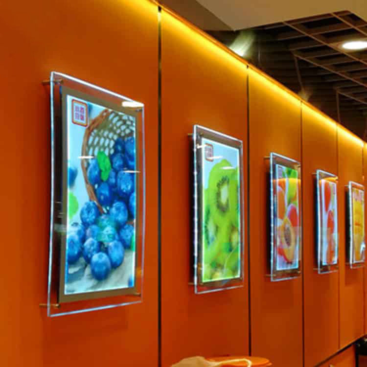 Features: LED sign custom a0 indoor advertising crystal light box. Frameless clear acrylic light box sign led display. Backlit clear crystal light box. LED wall mount crystal bar light box sign interior advertising signage. Menu board LED crystal light boxes led poster.