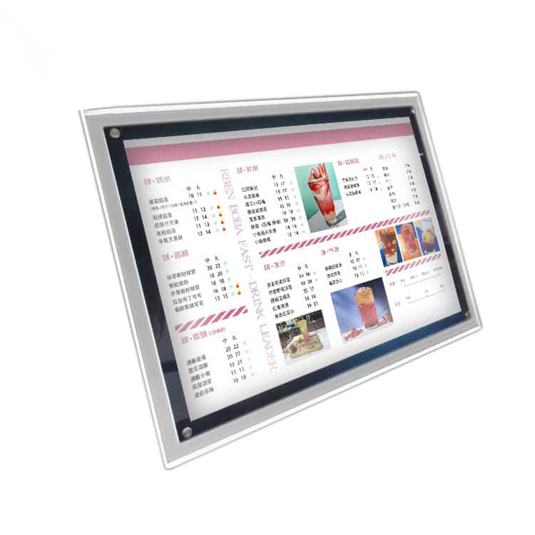 Features: LED signage custom indoor advertising crystal light box. Frameless clear acrylic light box sign led display. Backlit clear crystal lightbox poster frame sign.