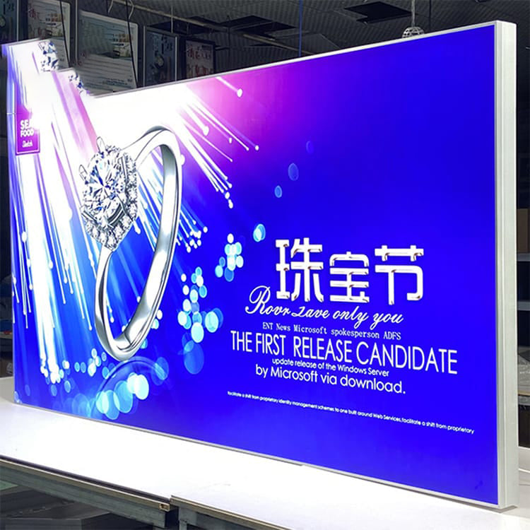 Firstly, there is no need to worry about its installation part of the tension fabric light box because it is extremely simple to install,we will prepare install accessories for you to easy install it.  Secondly, The fabric lightbox does the graphics which are finished with a stitched Silicon edge. This helps you in managing the fabric light box display without any hassles. Finally, you can easily fold up and packer with the graphics and when you open it again it would effectively iron out the crisis in order to stretch itself to set to the frame.