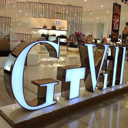 Face illuminated channel letter are the most popular led channel letter signage type. This letter light up fonly from the front of letters. They are ofent use in shopping mall, business building, outdoor plaza. 3D dimensional sign made of stainless steel or aluminm, and arylic face, illuminated from inside.