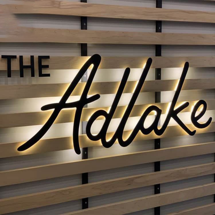 - Backlit business signs, custom light up metal sign with custom cut out letter and logo;
