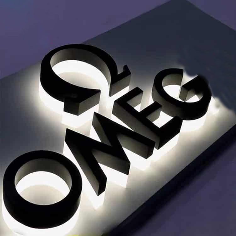 - Backlit signage board, led halo-lit channel letter sign on metal board for exterior;