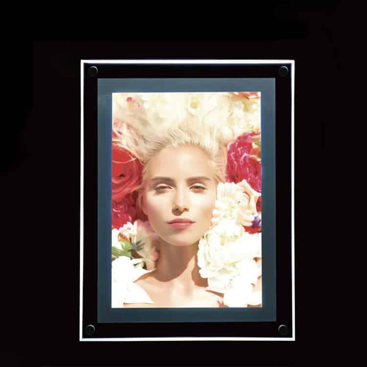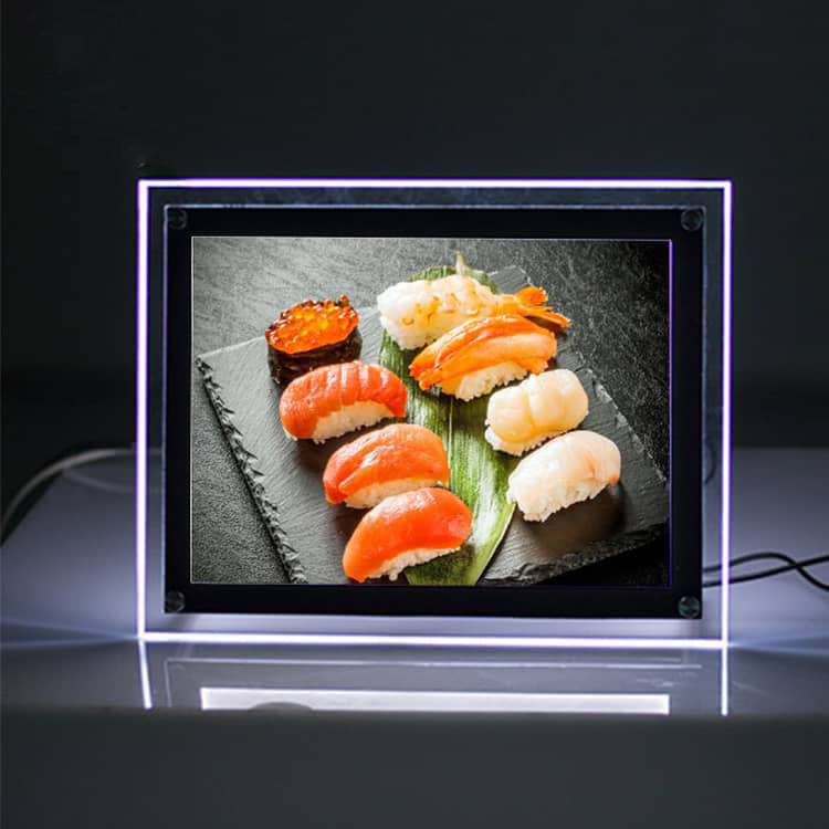 Features: LED signage custom indoor advertising crystal light box. Frameless clear acrylic light box sign led display. Backlit clear crystal lightbox poster frame sign. Illuminated Clear Advertising light boxes sign for advertising.
